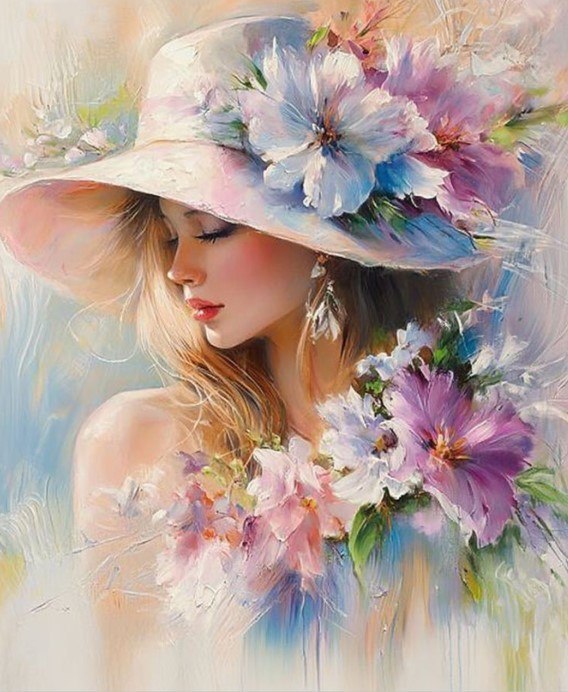Diamentowa Mozaika Kobieta Blond kapelusz w kwiatach NO-2003092