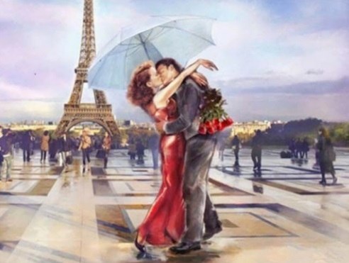 Diamentowa Mozaika Kobieta i mężczyzna zakochani w Paryżu NO-1006387