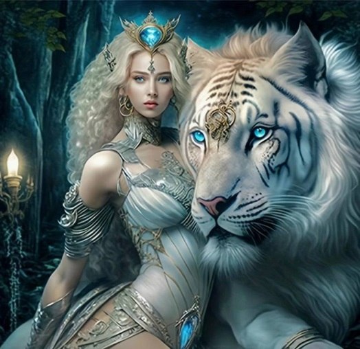 Diamentowa Mozaika Kobieta szafirowa królowa i biały tygrys NO-2000693