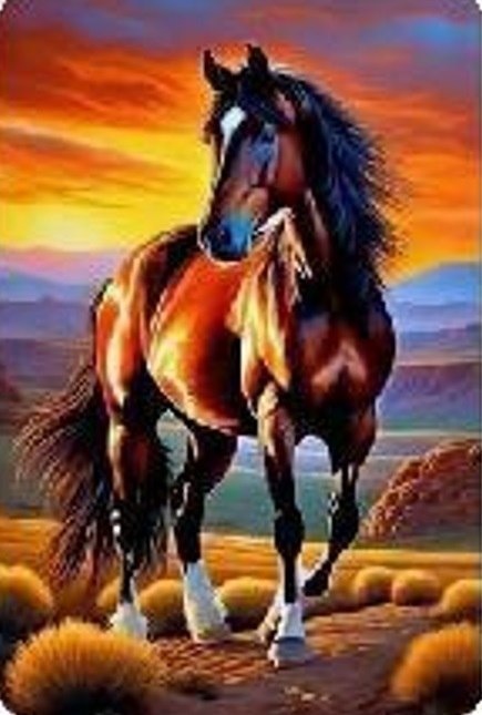 Diamentowa Mozaika Koń na tle zachodzącego słońca NO-2000118