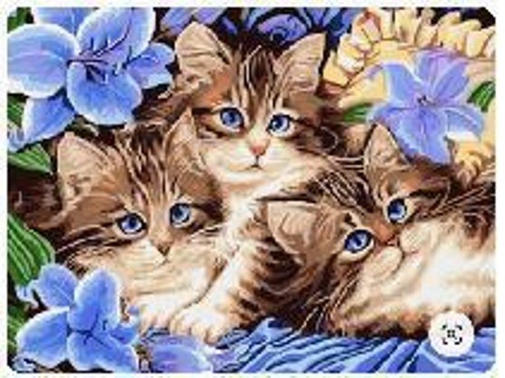 Diamentowa Mozaika Kotki trzy w fioletowych kwiatach NO-1008303