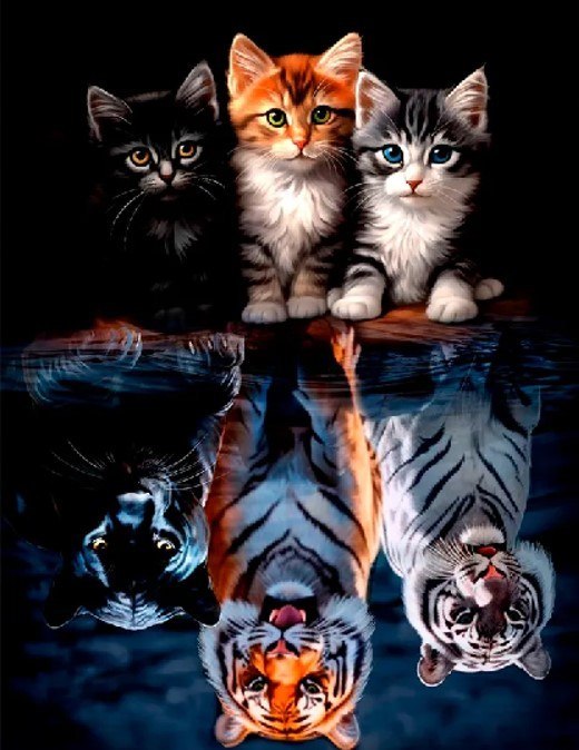 Diamentowa Mozaika Koty z odbiciem tygrysów w wodzie NO-2003125