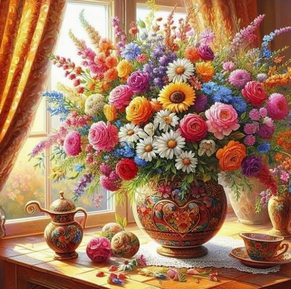 Diamentowa Mozaika Kwiaty bukiet przy oknie NO-2002157