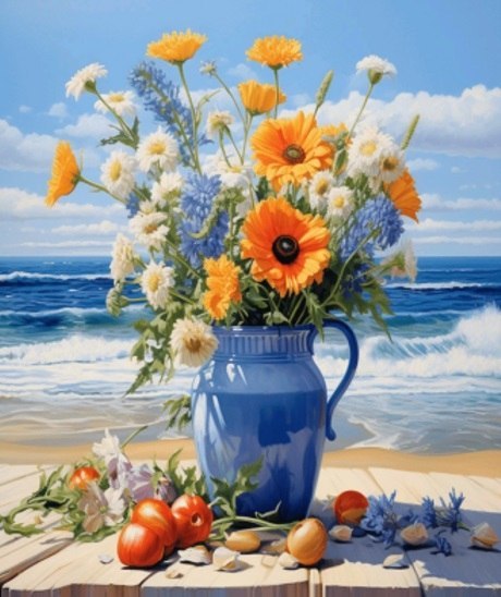 Diamentowa Mozaika Kwiaty w wazonie nad brzegiem morza NO-2000167