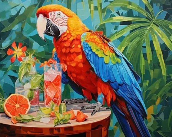 Diamentowa Mozaika Papuga na stole z napojami NO-2001366
