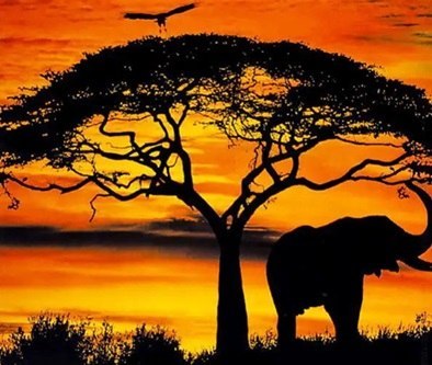 Diamentowa Mozaika Słoń zachód słońca NO-1004944