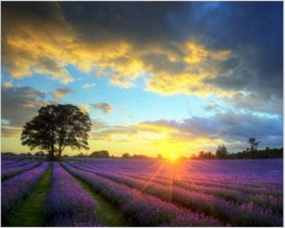Diamentowa Mozaika Wschód słońca nad lawendowym polem NO-1008681