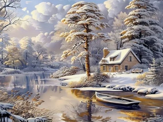 Diamentowa Mozaika Zima chata i łódź NO-2001714