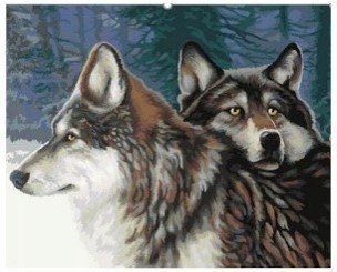 Diamentowa mozaika wilki dwa w zimowym lesie NO-1008528