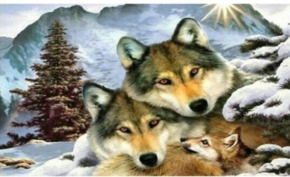 Diamentowa mozaika wilki rodzinka zimą NO-1005263