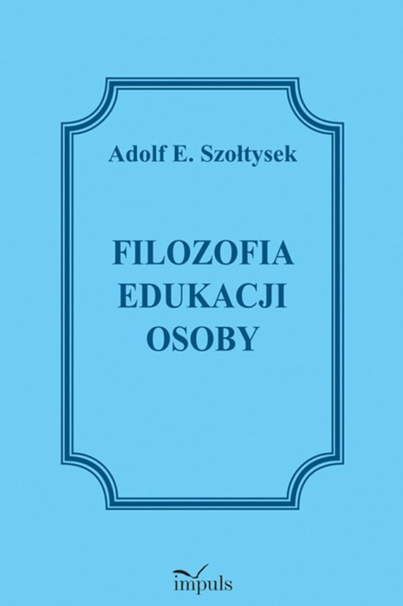 Monografia Filozofia edukacji osoby autorstwa Adolf E. Szołtysek oparta jest na sześciu implikacjach... dostępna wersji oprawy miękka, klejona, folia matowa oraz twarda, szyta. Objętość 196 stron