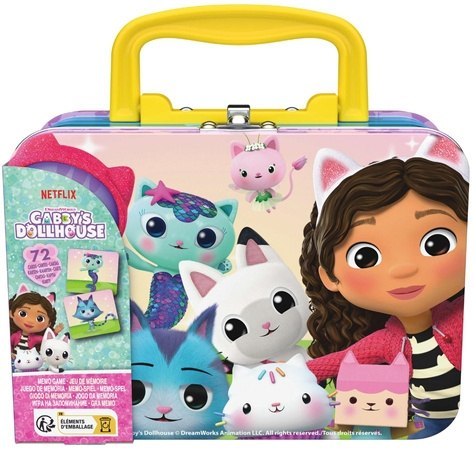 Zdobądź tę kolorową talię kart do gry w dopasowywanie obrazków z ekscytującymi postaciami i scenami z oryginalnego serialu DreamWorks Netflix Koci Domek Gabi. Ta zabawna i ekscytująca gra memory z 72 kartami jest odpowiednia dla wszystkich dzieci w wieku od 3 lat.