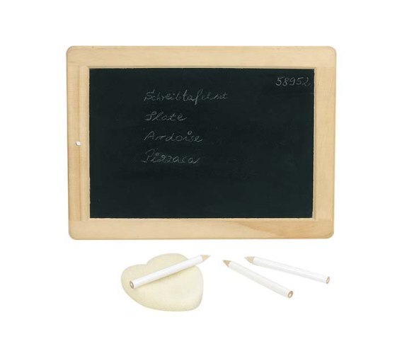 Oprawiona w ramkę niewielka, podręczna tablica na której można uczyć się pierwszych literek czy cyferek.