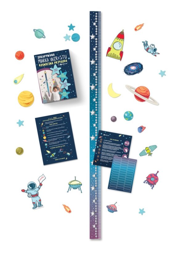 Zdrapywana Miarka Wzrostu „KOSMICZNA PRZYGODA" z łatwością przebija każdy pomysł na prezent dla dziecka i jego rodziców jaki miałeś dotychczas. Będzie świetnym upominkiem dla młodych, dynamicznych osób, które traktują życie jak sposób na nieustanne odkrywanie nowych rzeczy.