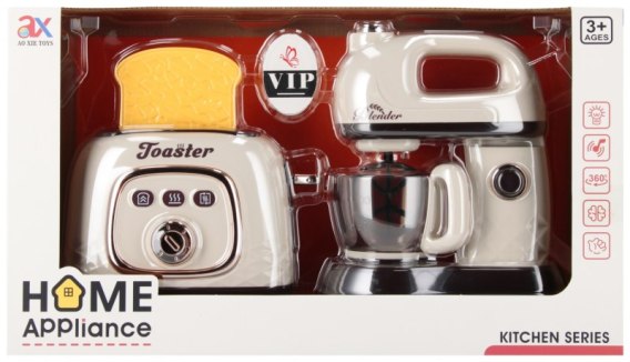 Zalety produktu : mikser posiada efekty świetlne oraz dźwiękowe, wydaje dźwięki jak prawdziwy robot kuchenny, którym przygotowujesz pyszności w swojej kuchni, wystarczy ,że przekręcisz przycisk a mikser zacznie mieszać składniki przygotowane przez ciebie i wyrobi pyszne ciasto, z tostera wyskakują grzanki.