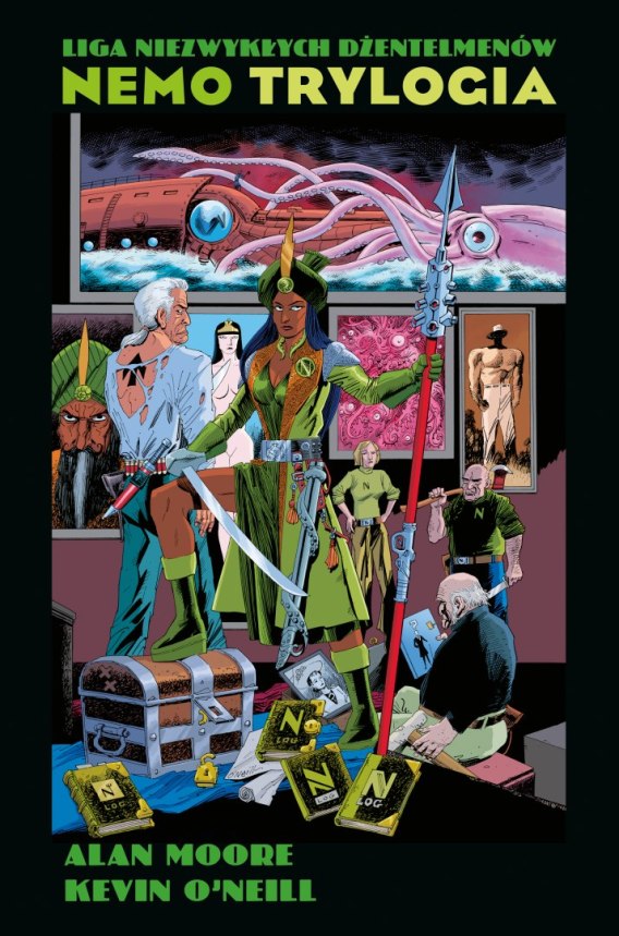 „Nemo. Trylogia" to zbiorcze wydanie trzech opowieści znakomitego duetu autorskiego, Alana Moore'a i Kevina O'Neilla, którzy brawurowo przedstawiają przygody córki legendarnego kapitana Nemo, członka Ligi Niezwykłych Dżentelmenów. Janni Dakkar znana jest przede wszystkim jako dziedziczka spuścizny swojego ojca i nowa kapitan „Nautilusa", okrętu siejącego postrach wśród ludzi morza. W opowieściach zebranych w tym tomie poznajemy bohaterkę na przestrzeni wielu lat. W pierwszej z nich, zatytułowanej „Serce z lodu", przemierzymy z księżniczką Antarktydę śladami ostatniej wyprawy jej ojca. Trafimy w okolice, o których pisali Edgar Allan Poe („Opowieść Artura Gordona Pyma z Nantucket") oraz Howard Phillips Lovecraft („W Górach Szaleństwa"). W „Berlińskich różach" akcja przenosi się do roku 1941. Janni wraz z mężem Jackiem Strzałą spieszą na ratunek córce i trafiają w samo serce Rzeszy. W upiornej metropolii czekają na nich nie tylko wojska wroga, ale także pozostałości niesławnych Bohaterów Zmierzchu, niemieckiej odpowiedzi na Ligę Niezwykłych Dżentelmenów. Ostatni rozdział trylogii, noszący tytuł „Rzeka duchów", ukazuje osiemdziesięcioletnią Janni Nemo w roku 1975. Bohaterka wyrusza „Nautilusem" na swoją ostatnią wyprawę w górę Amazonki, aby jeszcze raz zmierzyć się z dawnym wrogiem. Czy jednak ów cień z przeszłości istnieje naprawdę, czy to tylko jeden z duchów towarzyszących starej kapitan? Scenarzystą serii jest słynny brytyjski twórca Alan Moore, autor takich bestsellerów jak „Strażnicy", „Promethea", „V jak vendetta", „Providence". Rysunki są dziełem stałego grafika cyklu, Kevina O'Neilla („Nemezis the Warlock", „Marshal Law"), zdobywcy wielu wyróżnień komiksowych, w tym dwóch Nagród Eisnera. Lektura trylogii nie wymaga dokładnej znajomości fabuły „Ligi Niezwykłych Dżentelmenów". Album zawiera materiały wydane pierwotnie jako „Nemo: Heart of Ice", „Nemo: Roses of Berlin" i „Nemo: River of Ghosts". Komiks dla dorosłych.