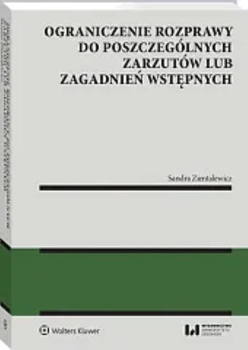 Książka stanowi pierwsze kompleksowe opracowanie instytucji ograniczenia rozprawy. Skupienie się przez sąd na jednym lub kilku aspektach sprawy jest istotne z punktu widzenia zapewnienia prawidłowej organizacji postępowania - pozwala ograniczyć koszty sporu, jego czas trwania, a także ułatwia sądowi i stronom prowadzenie postępowania oraz daje szansę na jego polubowne zakończenie. Autorka wyjaśnia:- w jakich przypadkach warto korzystać z omawianej regulacji,- w jakim przedmiocie może odbyć się rozprawa ograniczona,- na jakim etapie można ograniczyć rozprawę,- czy sąd jest uprawniony do ograniczenia postępowania poza rozprawą,- w jakiej formie należy ograniczać rozprawę i czy można ograniczenie odwołać,- czy strony są uprawnione do podniesienia zarzutów wobec wadliwego ograniczenia rozprawy oraz ewentualnie jakich,- jak powinien postąpić sąd odwoławczy, który nie podziela wniosków sądu pierwszej instancji co do przedmiotu rozprawy ograniczonej.