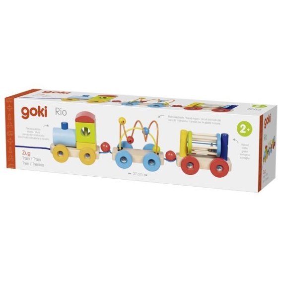 Pociąg Rio z klockami labiryntem koralikowym i grzechotką Goki
