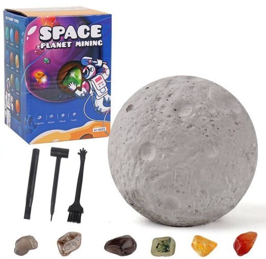 Gipsowa replika Księżyca: Zestaw zawiera realistyczną gipsową replikę Księżyca, która skrywa w sobie pełną tajemniczych niespodzianek. Przeżyj emocje, odkrywając fascynujące formacje geologiczne, skrywające zatopione skarby i niezwykłe ciekawostki.
