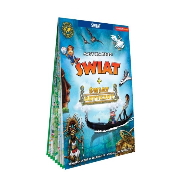 Rysunki są kolorowe, humorystyczne i przystępne dla dzieci - dzięki temu nawet najmłodsi odkrywcy z łatwością zdobędą ogólną wiedzę o świecie. Dodatkiem znajdującym się na odwrocie mapy świata jest bogato ilustrowana mapa świata antycznego.