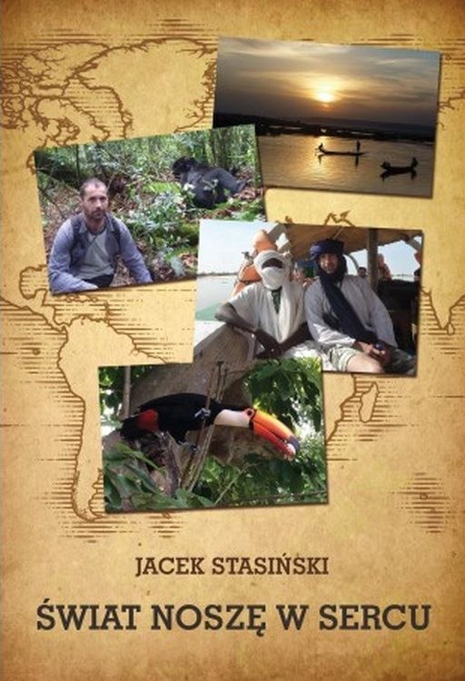 Świat noszę w sercu jest pierwszą książką z planowanej serii Podróży z Jackiem. To cykl promujący podróże oraz motywujący do poznawania świata z zachowaniemszacunku do odwiedzanych miejsc, napotykanych ludzi, tradycji i natury. Tom pierwszy zawiera 12 opowieści spisanych przez człowieka, dla którego świat stał siędomem i osadzonych w niezwykłych lokacjach na mapie podróży po czterech kontynentach.Odwiedzimy magiczne Timbuktu, oazę Siwa, staniemy oko w oko z gorylami górskimi. Dotrzemy na wyspy Galapagos, dopadnie nas burza w Kolumbii, będziemyścigać tukana nad wodospadami Iguazú. Na Jamajce wyłowimy z wody „żywe srebro". Czeka nas pełen humoru thriller nad wodospadem Niagara i corrida z wołem piżmowym w grenlandzkiej tundrze. Poznamy niuanse współczesnej Persji, japońskie ciekawostki z onsenu pod Fuji, czeka nas kąpiel z rekinem w tle w Kamakurze. Przemierzymy bezdroża Pamiru i będziemy świadkami wzruszającego spotkania z Polką w miejscu, gdzie diabeł mówi dobranoc.Jacek Stasiński - przyrodnik, miłośnik nieprzedeptanych szlaków, egzotycznych zwierząt i rzadkich roślin. Poznaje plemiona nieskażone cywilizacją, ludzi, ich zwyczaje, smaki, kulturę, tradycję, ale fascynuje się też architekturą i życiem wielkich miast. Odwiedził ponad 150 krajów. Tworzy projekty podróżnicze i organizuje wyprawy, o swoich doświadczeniach opowiada z pasją i humorem w radiu i podczas spotkań. Równie dobrze czuje się w amazońskiej dżungli bądź australijskim interiorze, jak i wsercu Manhattanu albo wiedeńskiej operze. Choć mieszka obecnie w Warszawie, zna zakamarki Buenos Aires, Tokio czy Paryża. Z podróży poza wspomnieniami przywozi ozdoby choinkowe, którymi mógłby ubrać niejedno drzewko.