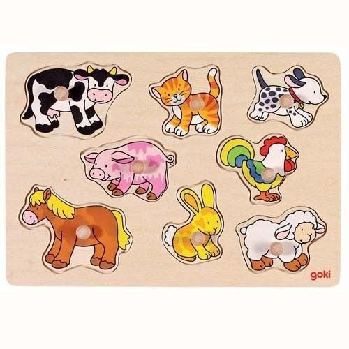 Wspaniała zabawa w układanie zwierzątek wiejskich. Dzięki specjalnym uchwytom małe rączki jeszcze lepiej poradzą sobie z dopasowywaniem kształtów.