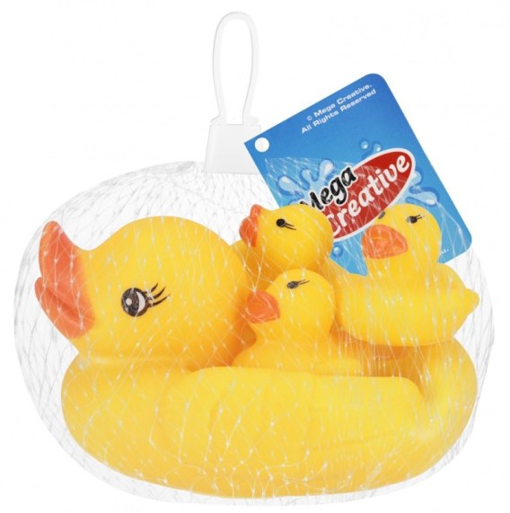 Przeznaczenie: do kąpieli i zabaw wodnych. Zawartość zestawu: 4 x kaczuszka gumowa.