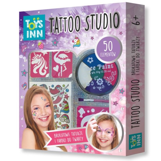 Każdy animator bez problemu stworzy piękny tatuaż, dzięki dołączonym szablonom oraz brokatowym tatuażom.
