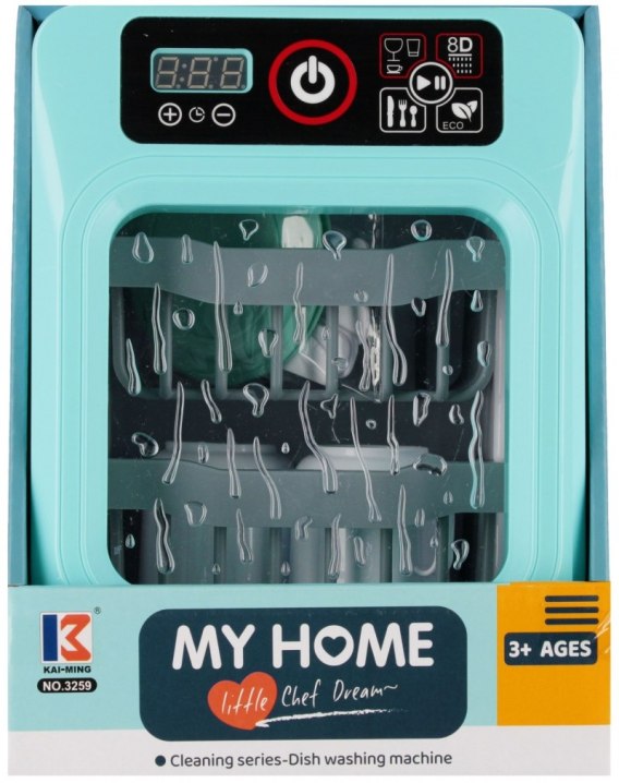 Zmywarka od MEGA CREATIVE imituje działanie prawdziwej zmywarki do naczyń, posiada efekty świetlne oraz dźwiękowe, wydaje różne dźwięki, efekt wlewania wody, odliczanie czasu pracy wg. wybranego programu, efekt otwarcia/zamknięcia drzwiczek zmywarki, rozpoczęcie/zakończenie procesu zmywania, efekt światła wewnątrz zmywarki, dodatkowo posiada ruchome szufladki, które ułatwiają jej załadowanie oraz wyładowanie.
